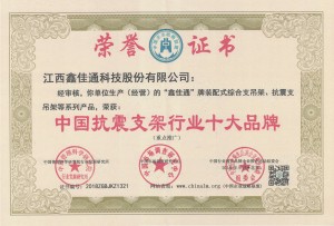 - 我們擁有多年抗震支吊架生產(chǎn)經(jīng)驗(yàn),獲多項(xiàng)國(guó)家專利、國(guó)家檢測(cè)機(jī)構(gòu)頒發(fā)檢測(cè)報(bào)告證書,我司生產(chǎn)的抗震支吊架是江西省住房和城鄉(xiāng)建設(shè)廳重點(diǎn)推廣產(chǎn)品,現(xiàn)有廠房、生產(chǎn)設(shè)備等固定資產(chǎn)投資過億。